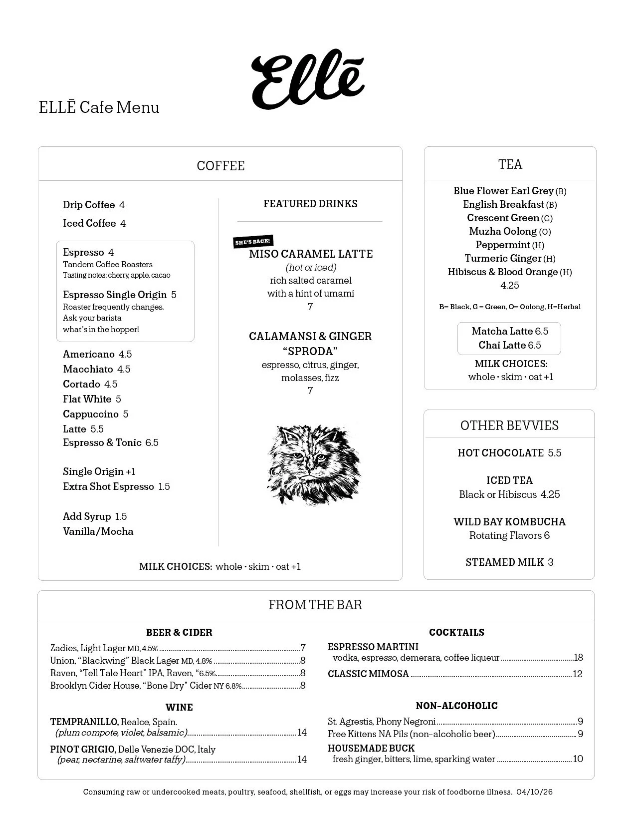 MENUS SUBJECT TO CHANGE. Updated 04/24/26