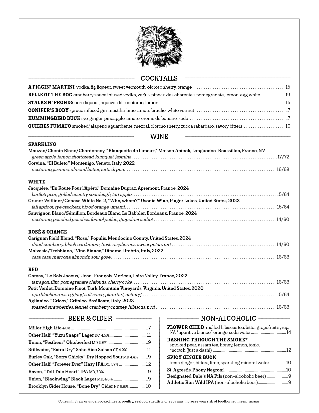 MENUS SUBJECT TO CHANGE. Updated 12/18/25
