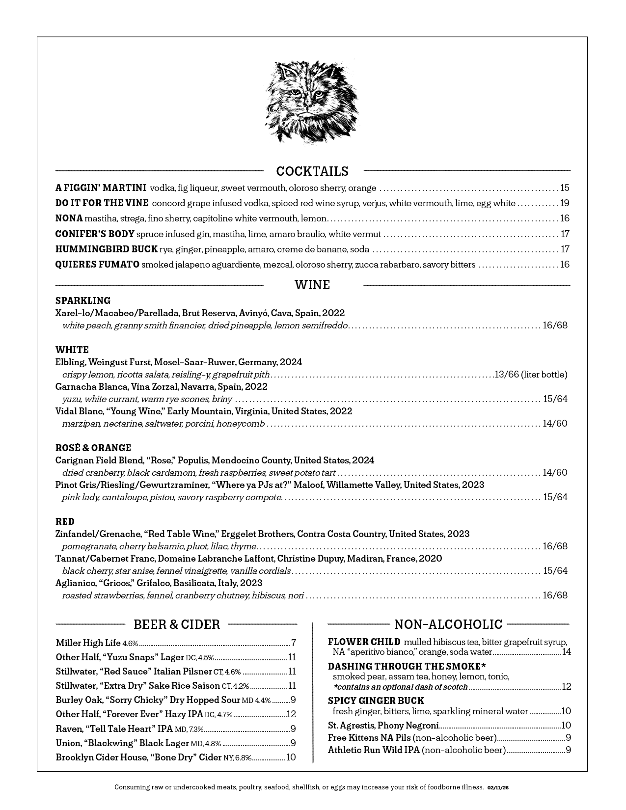 MENUS SUBJECT TO CHANGE. Updated 02/11/26