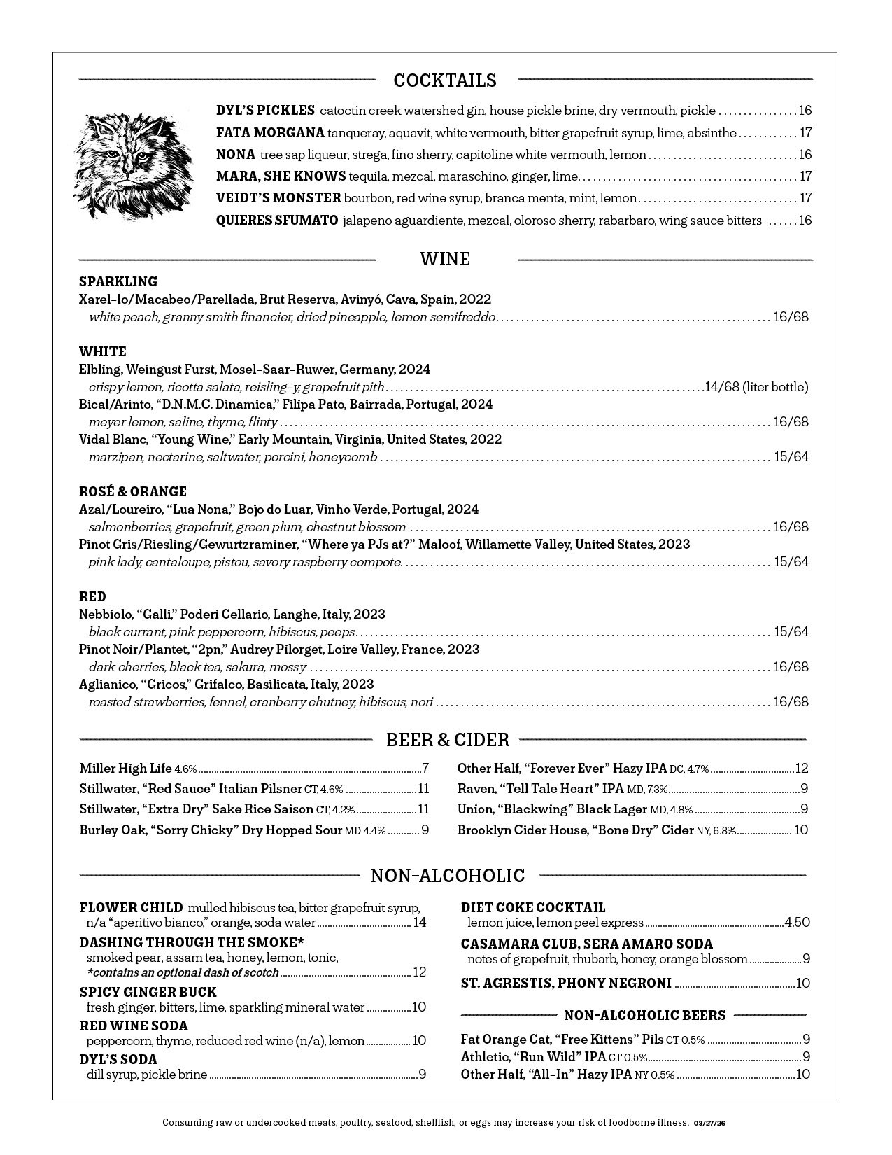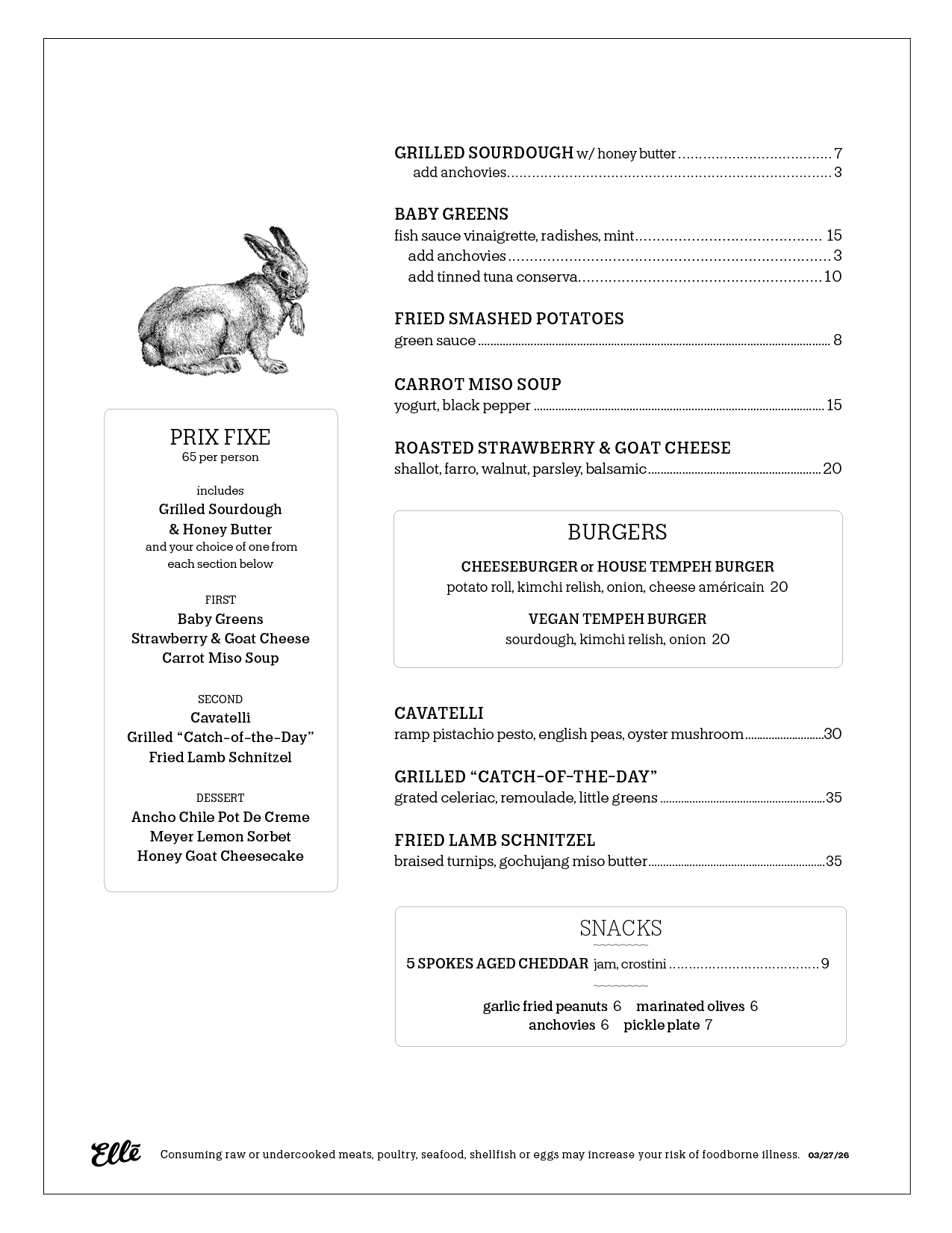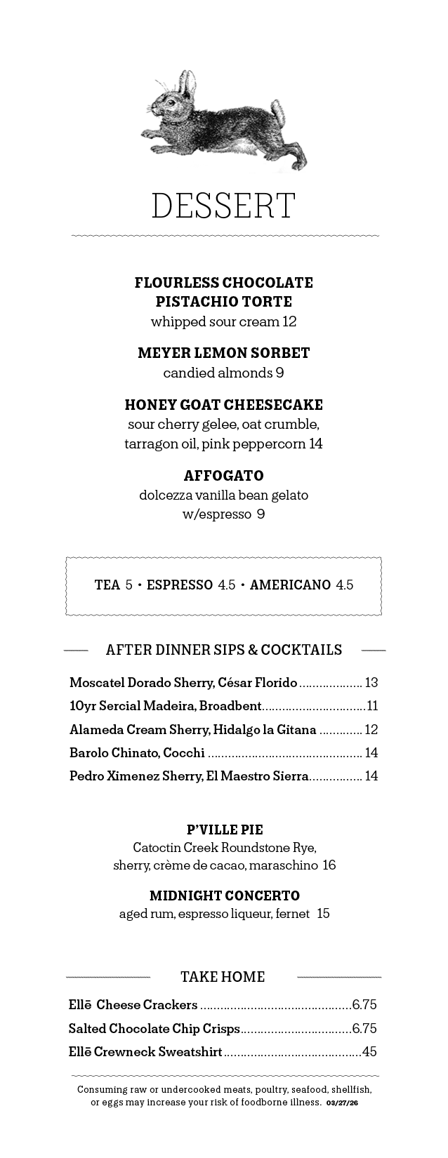 MENUS SUBJECT TO CHANGE. Updated 03/27/26